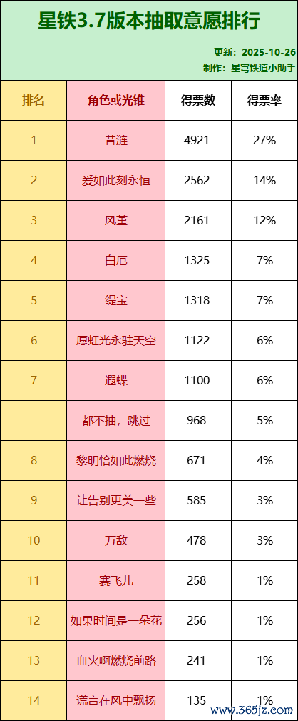 《崩坏:星穹铁谈》3.7版块抽卡意愿名次,昔涟无悬念第一,复刻脚色她比蝶白缇更热点