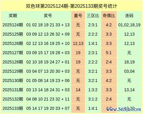红球三区比为1:4:1,大小比为4:2,奇偶比为4:2,连码开出19,20,重迭号码未出现。